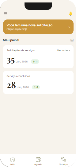 Os profissionais contam com um espaço exclusivo para receber solicitações em tempo real, acompanhar os resultados do mês e gerenciar a rotina com tranquilidade.