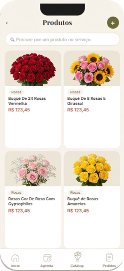 As floriculturas ganham uma vitrine visual sofisticada para os seus produtos, além de um espaço prático para acompanhar vendas, novos pedidos e as entregas do dia.